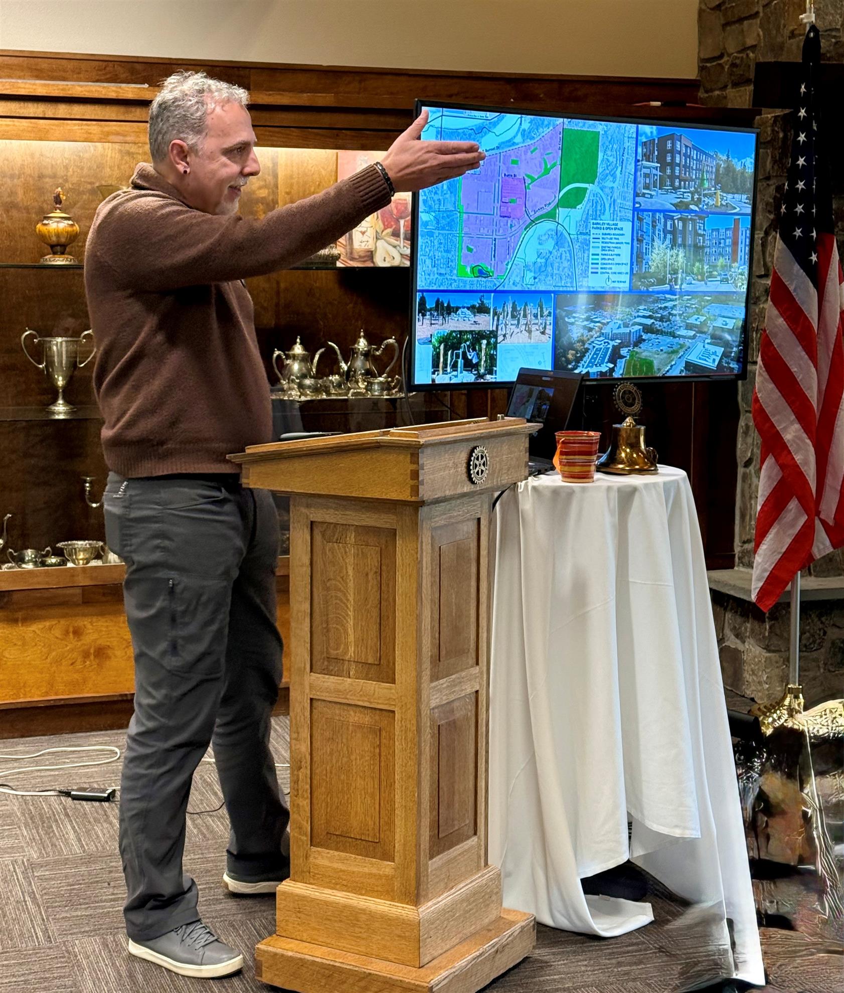 Soundings (11/12/19)Flag Salute & Invocation by Tim Krell Visiting Rotarians: None Guests: Brett and Debbie vanSteenwyk Announcements by President Brad Board meeting this Thursday 4:30pm at RMC office all are welcome. Reminder to give to to our annual Turkey Drive thru the Bellingham Food Bank. Sergeant at Arms by Steve Swan Recognized our club’s veterans, and Veterans Day trivia. Bucks in the Bay