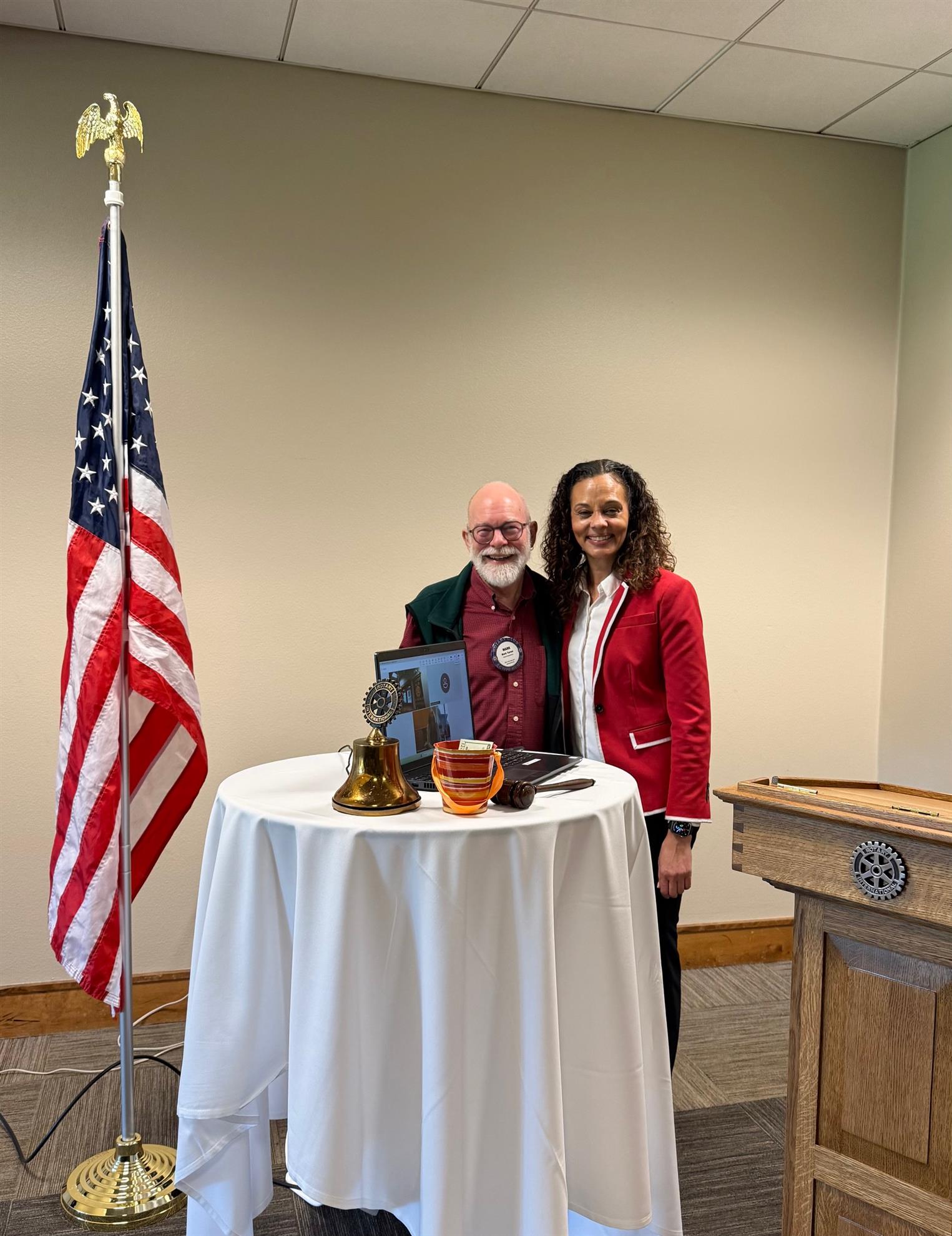 Tuesday Lunch Meeting![]() ![]() Isabelle Martinez Hayer, Rotary District 5050 Governor (2025 - 2026) speaks to the club and new member, Todd Luther, is inducted. |